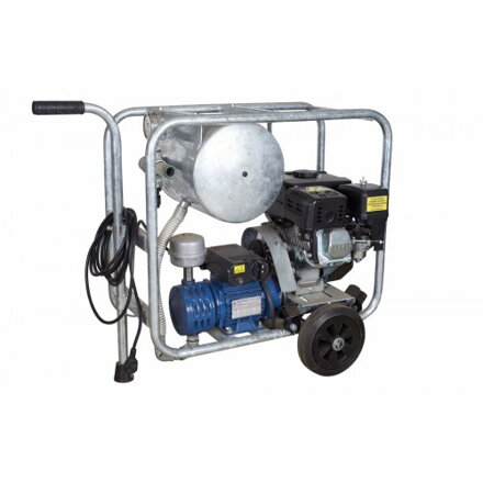 Vlastnosti: Motor: KIPOR KG160D, 5.5 HP, benzín A95 Vákuové čerpadlo: PM3, suché, 140 l/min (Milkline, Taliansko) Spotreba paliva: 395 g/kwh Elektromotor: 220 V, 0,37 kw Vákuový merač: zahrnutý Regulátor podtlaku: zahrnutý Palivová nádrž: 3,6 l Odporúčame pre 1–2 dojacie jednotky Popis: Kompaktná vákuová jednotka Dojacie jednotky nie sú pripevnené k vozíku Vákuovú jednotku je možné umiestniť vzdialene od miesta dojenia, čím sa zníži možnosť hluku Jednotka je určená pre malé farmy/stáda Jednotka je nezávislá od stacionárneho alebo prenosného napájania. Ak je ale napájanie k dispozícií, môžete ho zapojiť Jednotka je vhodná na dojenie do vedier alebo malej nádrže na mlieko
